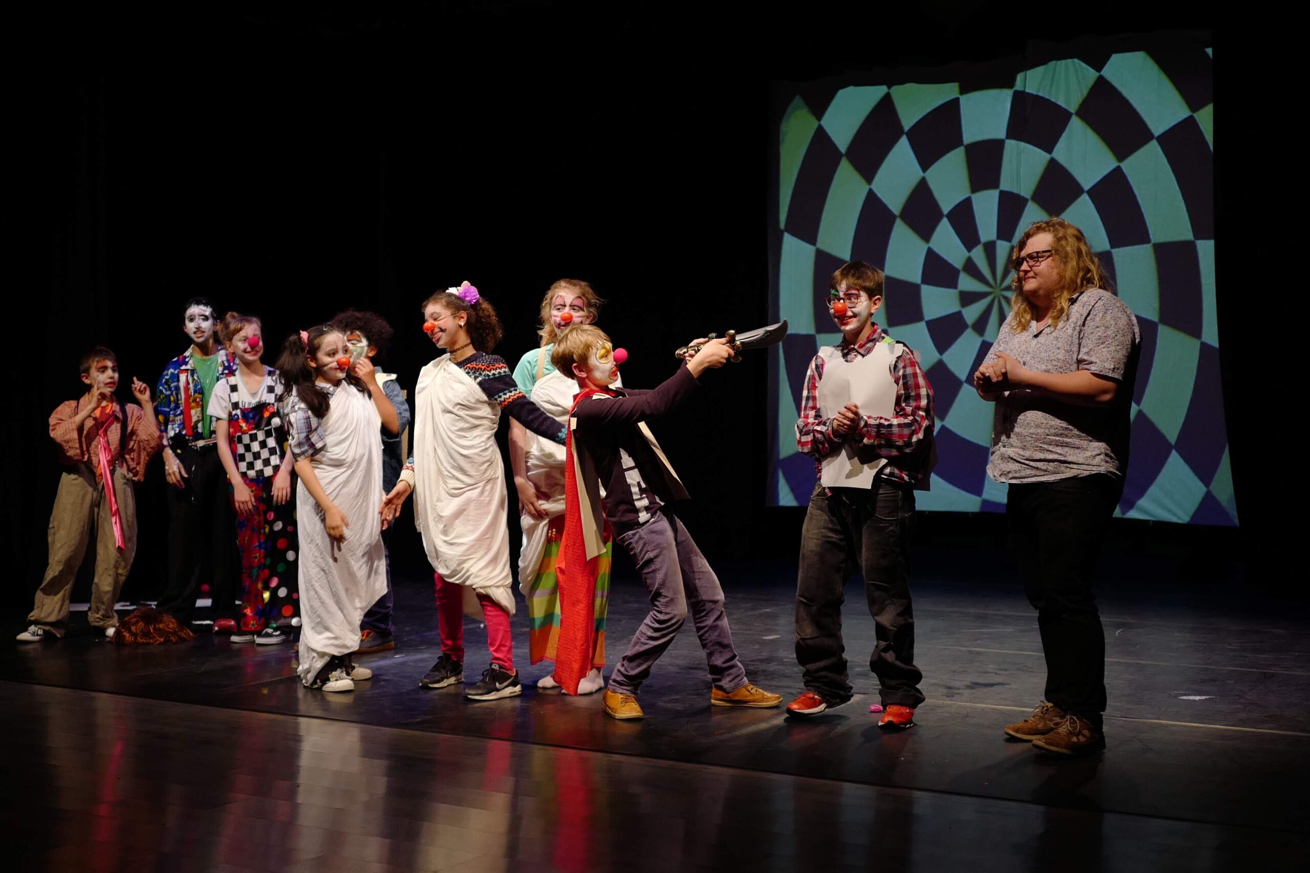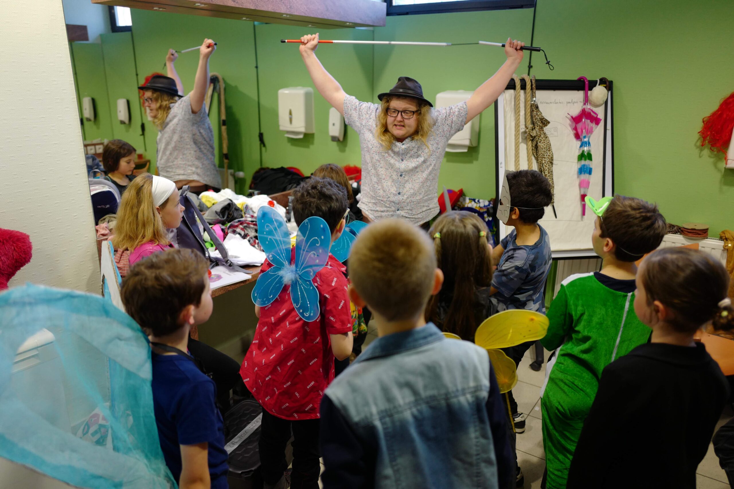 Pas de texte à apprendre par cœur : on progresse à travers des jeux et exercices adaptés, et on a la joie de se produire plusieurs fois dans l’année devant un public, avec des mini-jeux et de courtes créations travaillées ensemble.